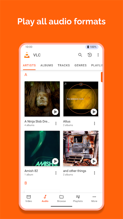 1、VLC播放器可播放大多数本地视频和音频文件,以及网络流(包括自适应流媒体)、DVD ISO 镜像,与桌面版 VLC 功能一致