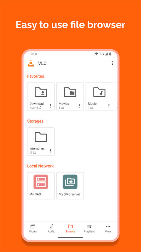6、内置音频与视频媒体库,也可直接浏览文件夹