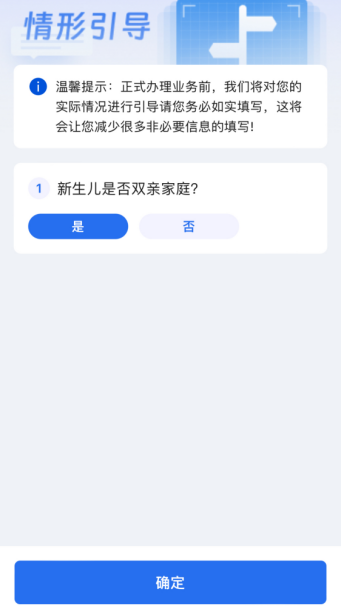 4、阅读办理须知后,根据真实情况填写情形引导,全部完成后点击屏幕下方的“确定”即可。