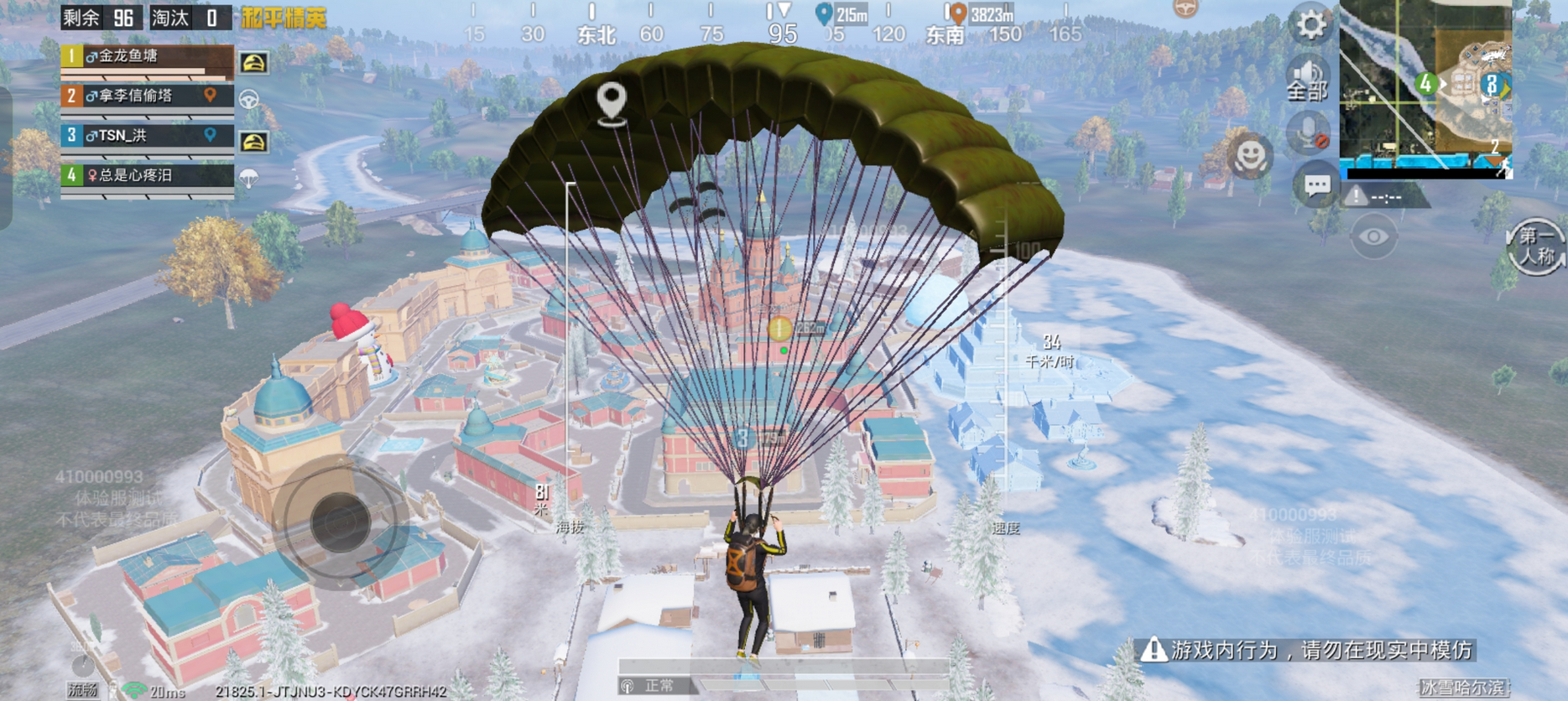 ③《和平精英体验服》测试目的是进行新功能游戏测试和寻找游戏BUG,游戏内设置可能会与正式服务器有所区别(如等级提升、经验加等)。所以,测试内容不等同于正式服游戏最终内容,请一切以官方公告为准。