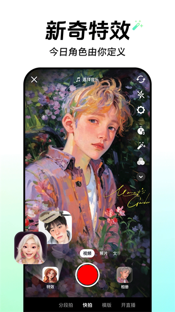 2、随机录制一段视频,并对视频进行配乐、特效的效果编辑;