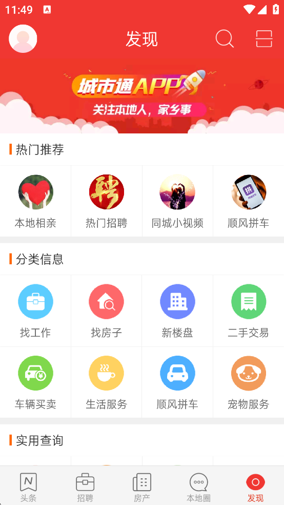 3、找工作、找房子、二手闲置等城市生活服务