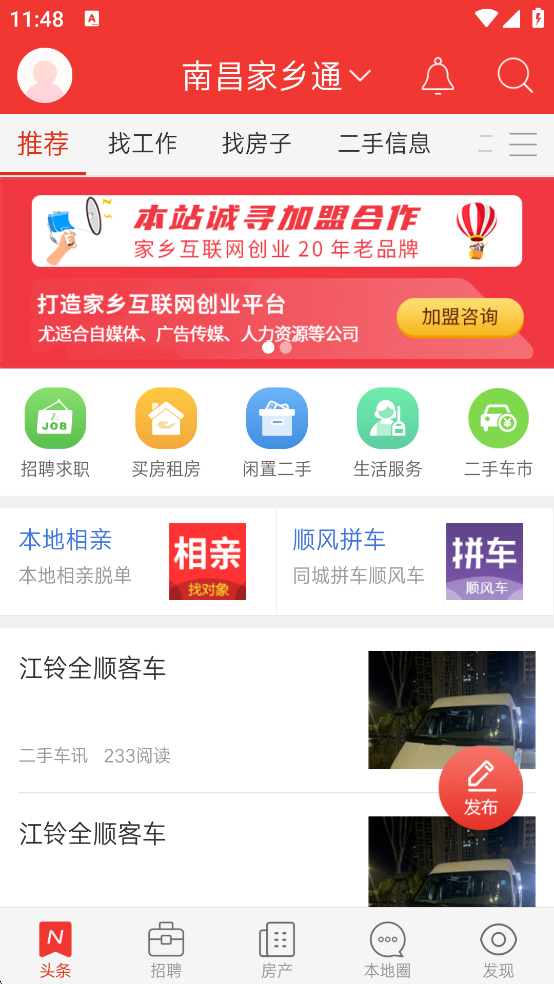 3、家乡招聘求职、房屋买卖、闲置二手等生活信息服务;