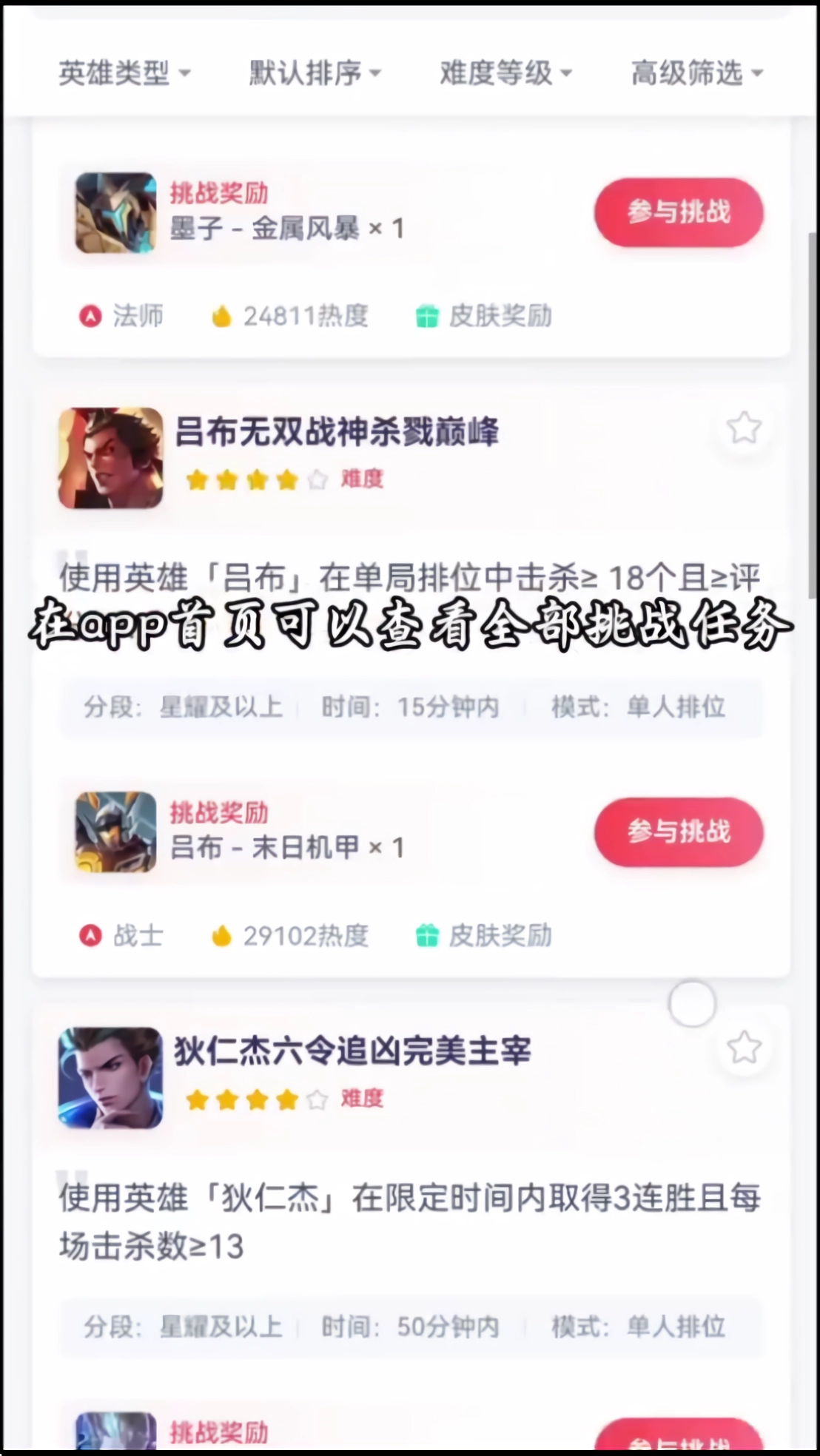 3、不同挑战的难度不同,皮肤奖励也会不同