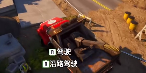 1、首先玩家需要驾驶这辆红色的吊车,选择沿路驾驶。