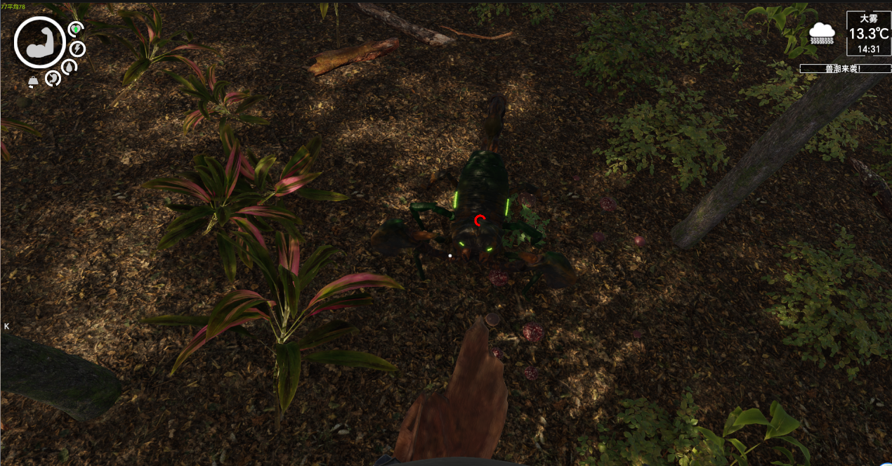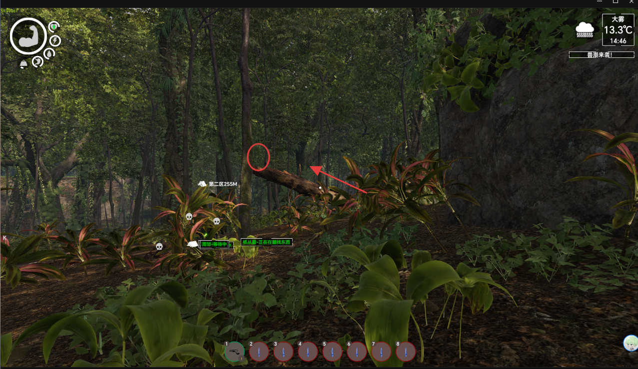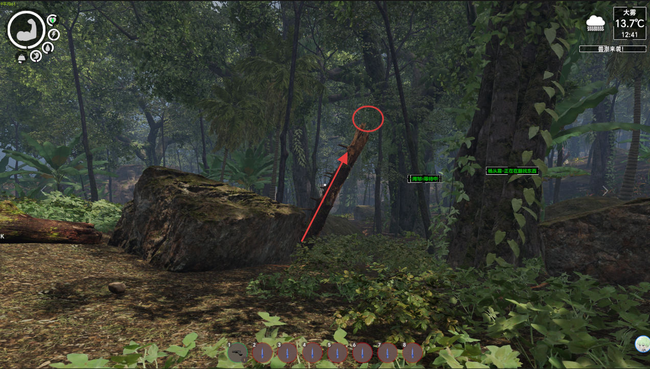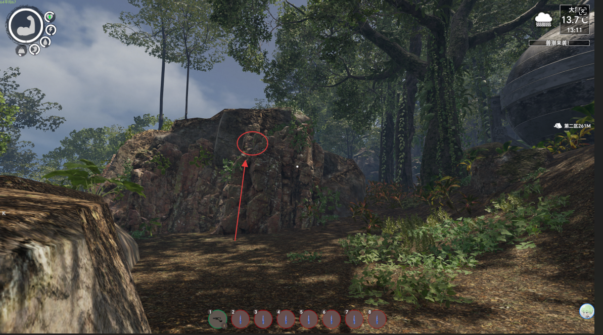 三十一号很简单哈,我们直接找到这个地方 就在怪物刷新点周围 一块岩石旁边一根接近80度插在地面的枯木,枯木不用跳直接可以走到最上面,