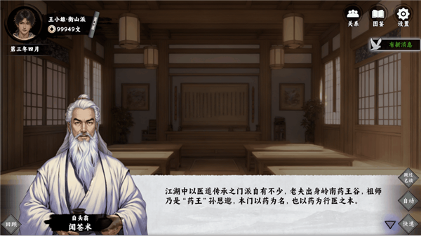 2、战斗系统方面则更偏向策略与内功体系的深度构建。你不仅要考虑技能搭配、功法克制,还要关注弟子间的相性和阵型变化。
