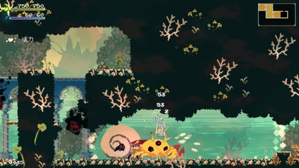 游戏特色鲜明:精致的像素美术、丰富的动作玩法(近战连击、闪避、远程攻击)、独特的“纹章”系统允许玩家自定义战斗风格、难度可调等。对于新手玩家来说,这是一款非常适合入门银河战士恶魔城类型的游戏。