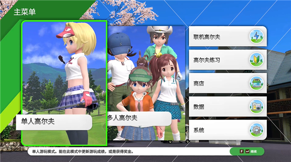 在1人专用模式「单人高尔夫」中,除了有一般的比杆赛模式外,更有着数以百计的大赛,让玩家以取得冠军为目标的挑战模式。