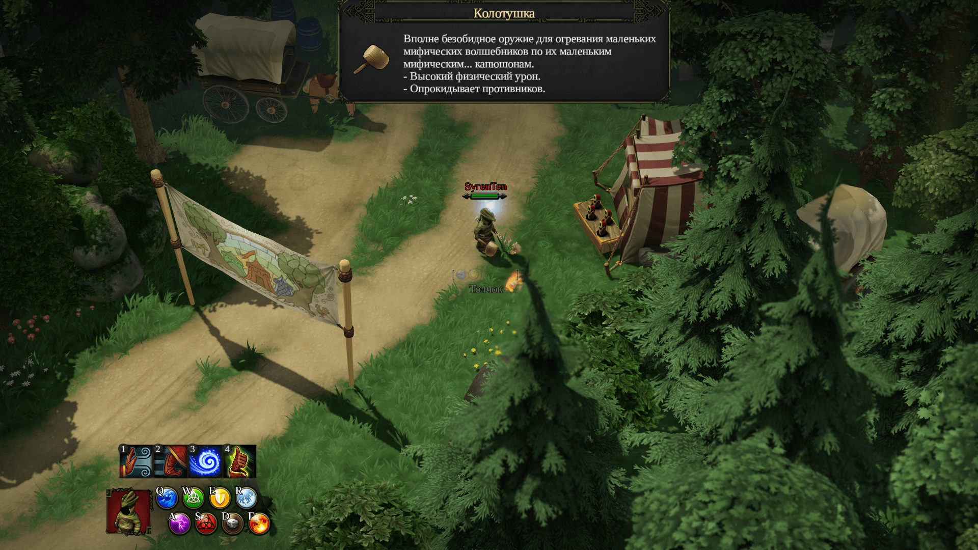 小巫师的帐篷旁躺着一把锤子。