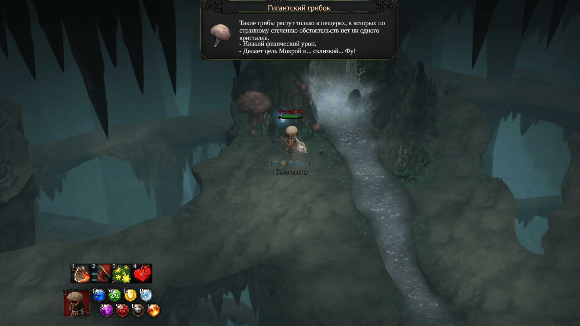 大蘑菇旁边躺着一个小蘑菇,你可以捡起来。