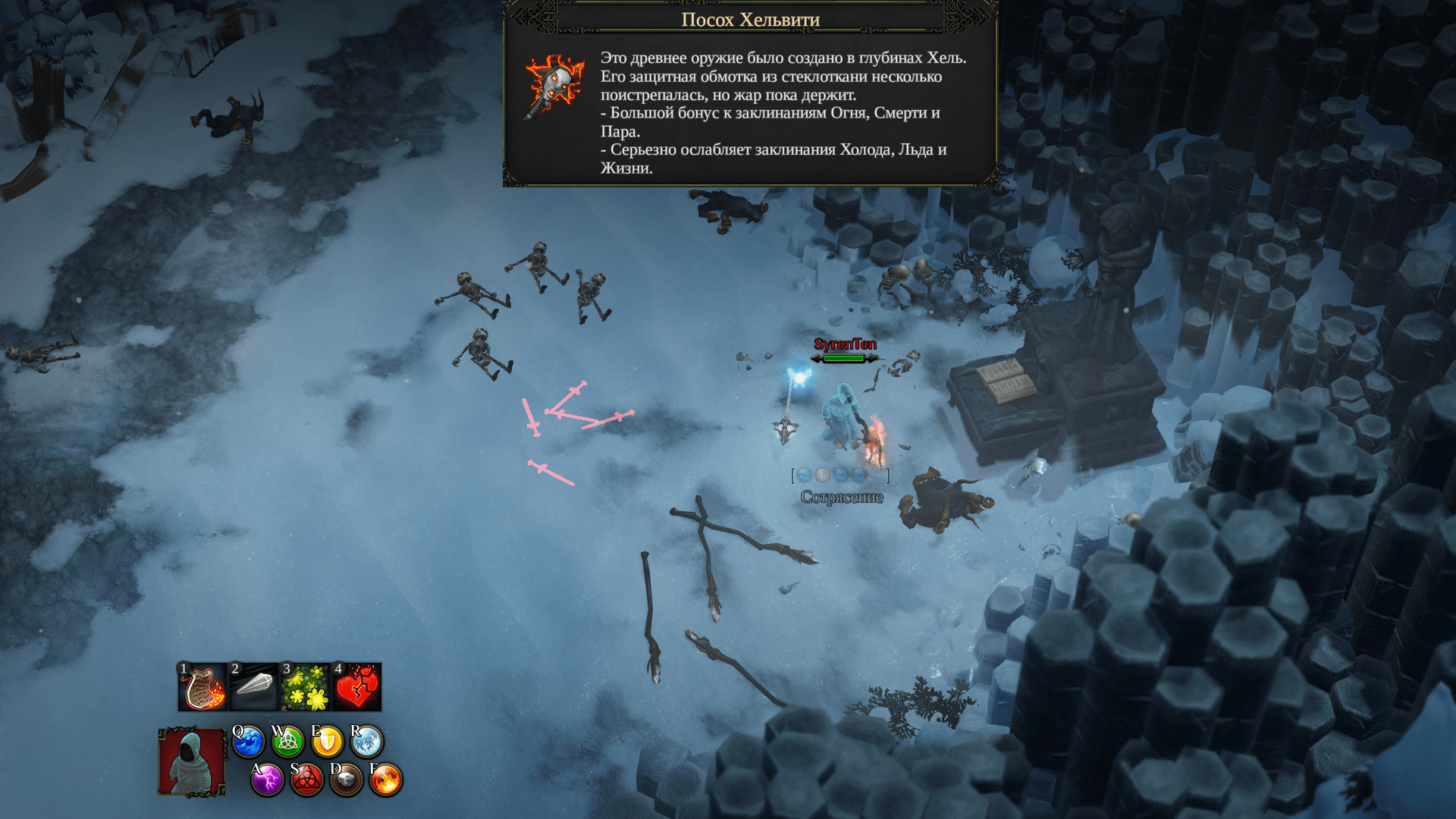 靠近祭坛,将寒霜与雷电的混合物涂抹在剑上,然后劈向祭坛。击杀骷髅后,你将获得新法杖。