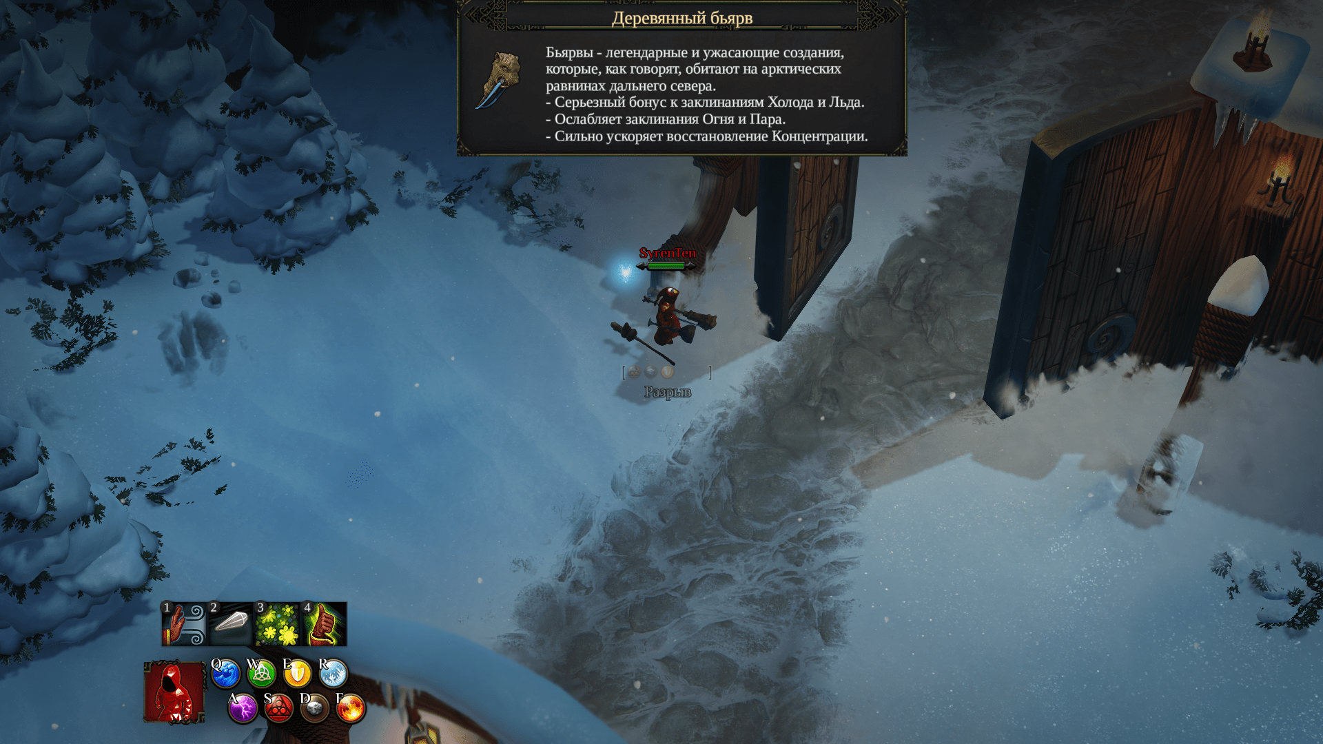 继续向前推进,你将看到燃烧的房屋。扑灭房屋之间的火焰,那里藏着一把战斧。