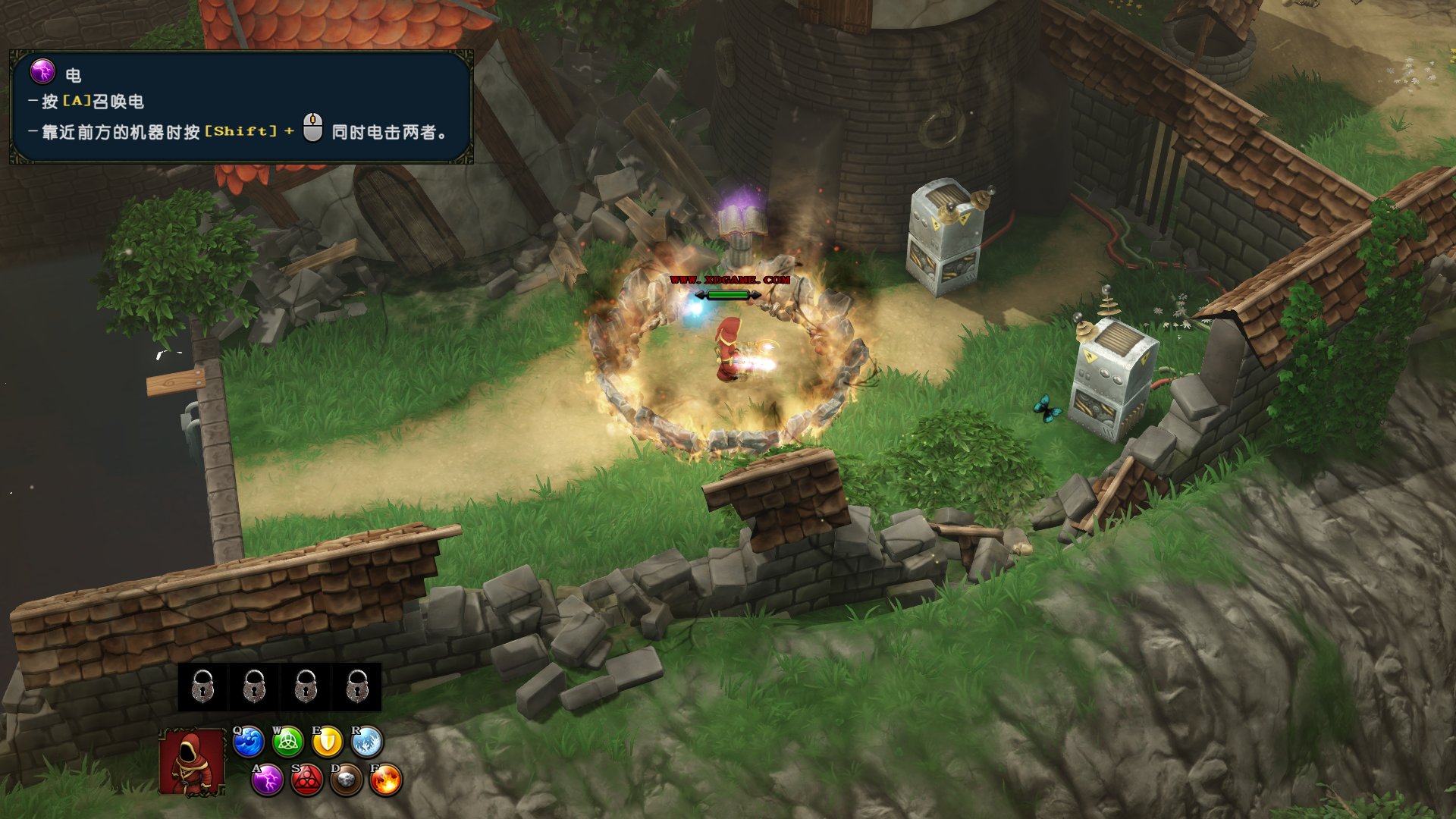 8、电魔法,可以通过“Shift”+鼠标中键施展范围伤害,同时损坏机械机关。