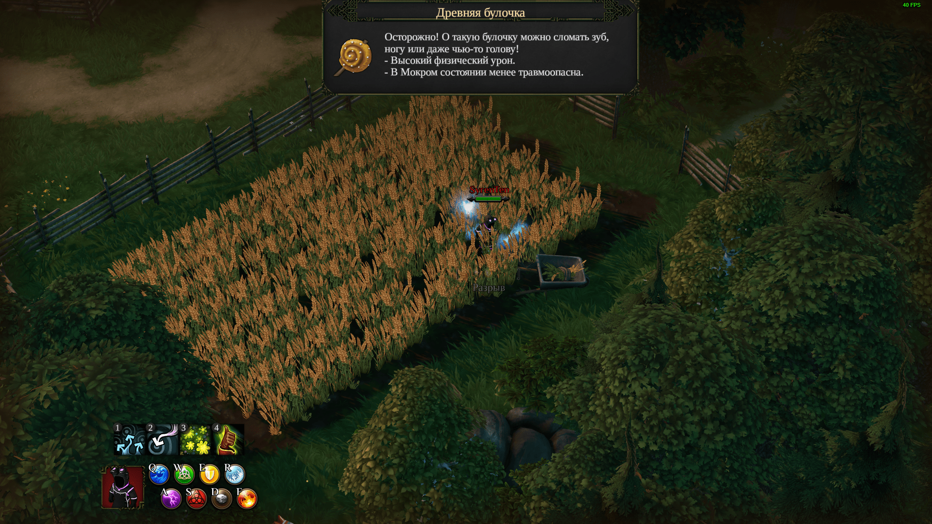 杀死玛蒂尔达后,将湖面冻结,沿着小径前往麦田。那里藏着一个宝箱。从中你将获得一个不怎么可口的面包卷。