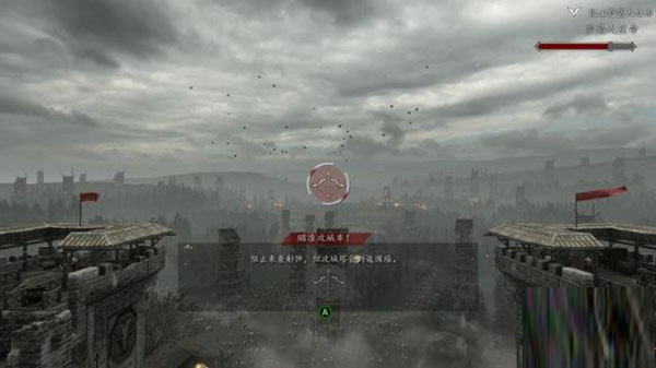 2、首先会出现两个弓箭手射击点,选择下面可以让攻城塔无法到达围墙,但是攻城投石等武器会继续开火!