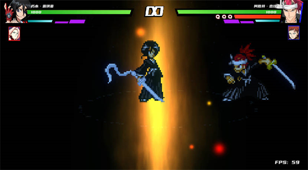 4、死神角色和剑心专属技能。在受击时释放辅助键(P1为O,P2为6)可触发,角色将进入短暂无敌状态,反弹敌人攻击并立即恢复站立姿态。