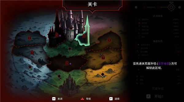 1、玩家进入黑夜刀锋幸存者游戏,选择关卡、完成普通难度即可解锁其它难度;
