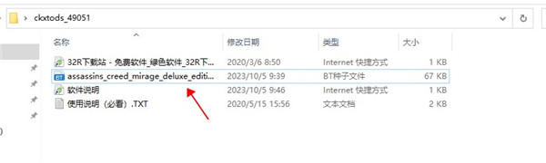 1、在本站下载压缩包后得到如下文件,并点击“assassins_creed_mirage_deluxe_edition_uplay_rip.torrent”开始下载游戏文件;