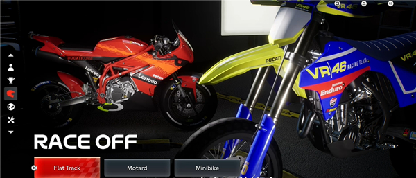 1、世界摩托大奖赛25新增RACE OFF比赛,拥有PedroACOSTA、SomkiatCHANTRA、EneaBASTIANINI三名摩托车运动员可选择。