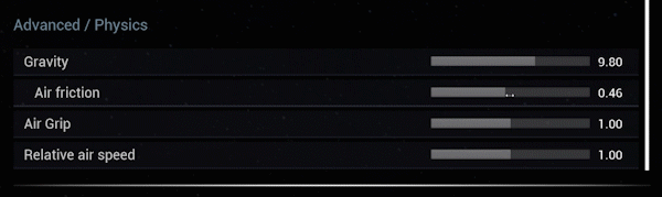 你甚至可以微调物理学设置,如重力、空气摩擦,甚至螺旋桨的效率,油门水平等。