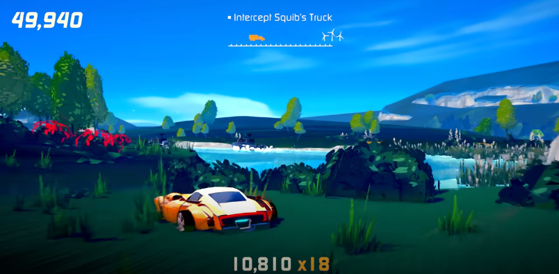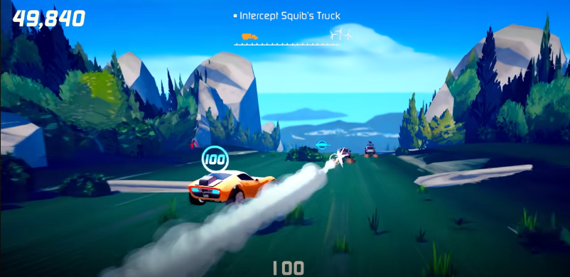 1、游戏开始,玩家需要驾驶车辆追击敌人,追击过程中,需要躲避敌人的进攻。