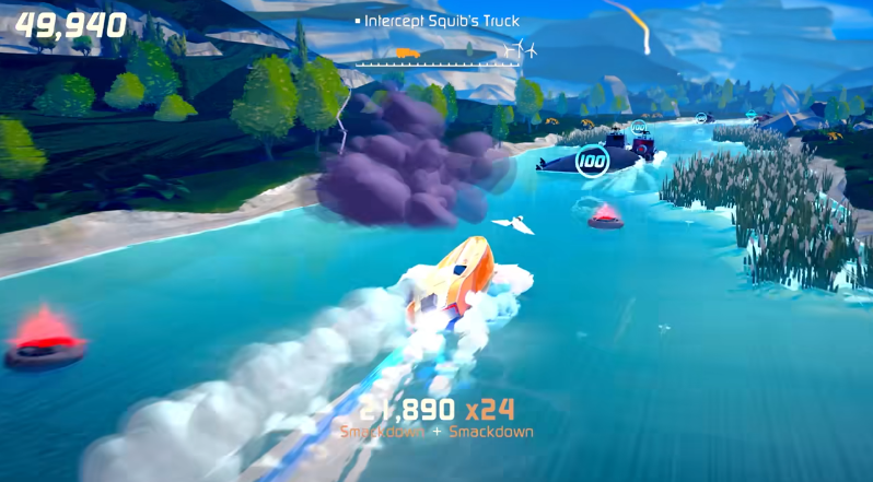 6、冲出瀑布,也需要玩家即时从船只变成赛车,变成其他形态可能就会导致意外的发生。