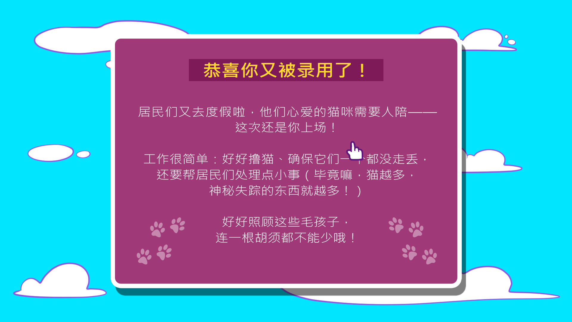 总体来说,《满是猫的大楼2》不仅考验眼力和耐心,还充满了惊喜和挑战。虽然一开始可能会觉得有点难,但随着熟悉楼层和住户的规律,一定能顺利通关。对于喜欢解谜和收集的小玩家来说,这款游戏绝对值得一试!