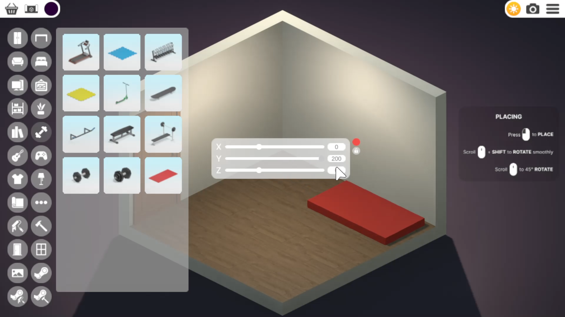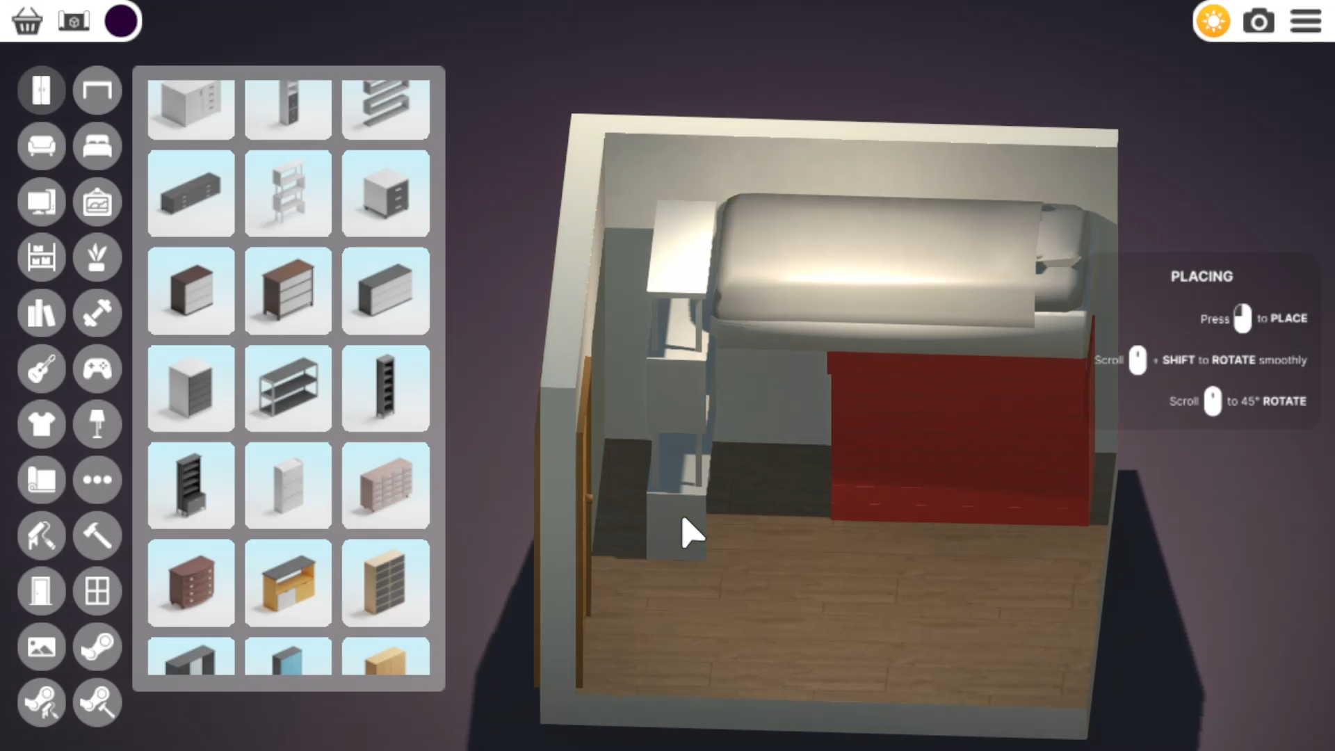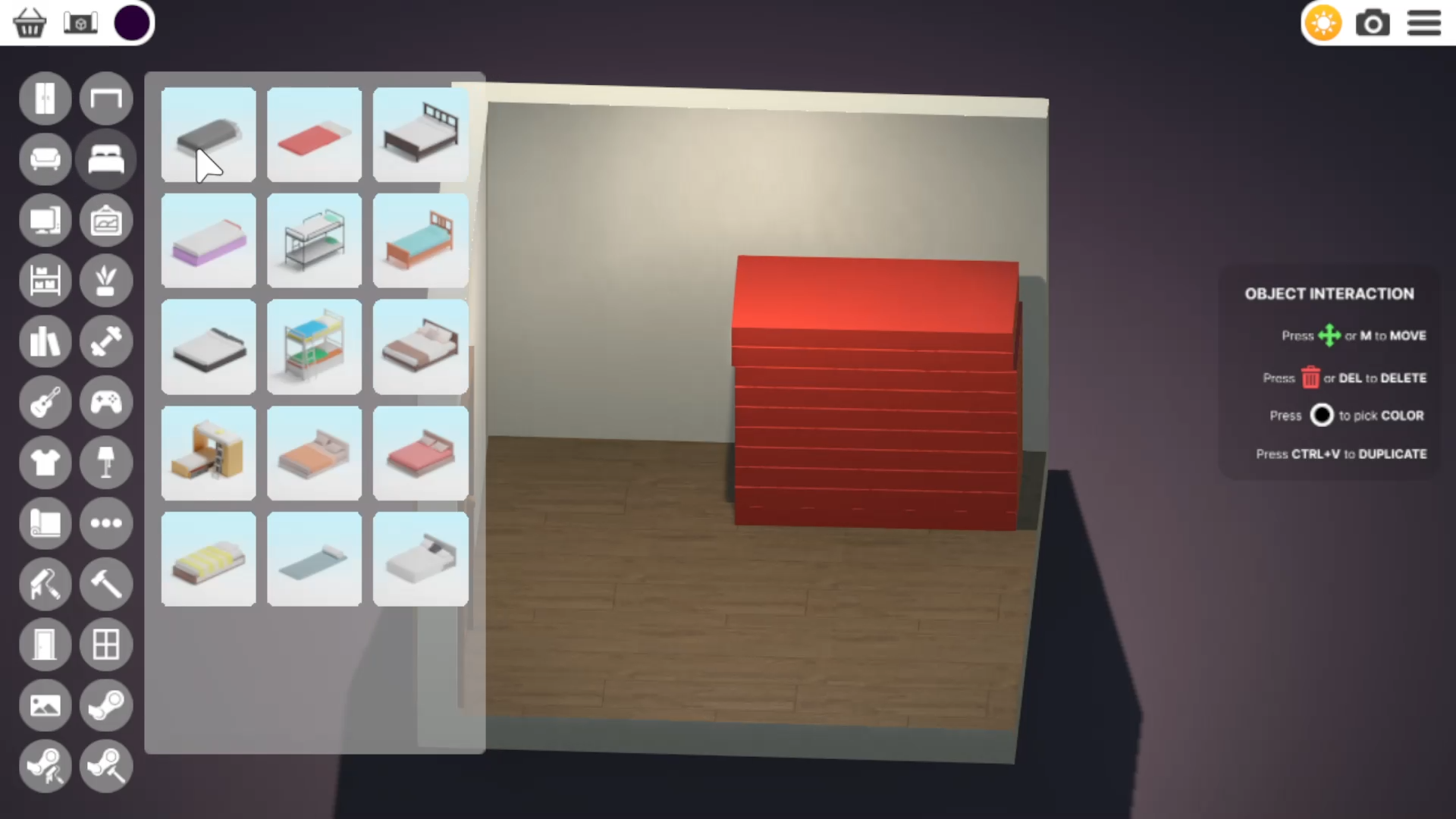 点击红色垫子并将其放置在你最终希望床摆放的位置。