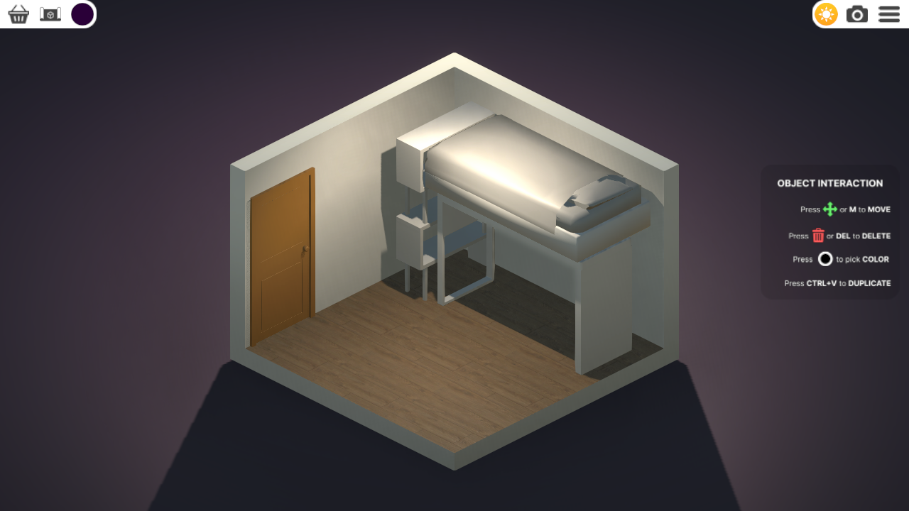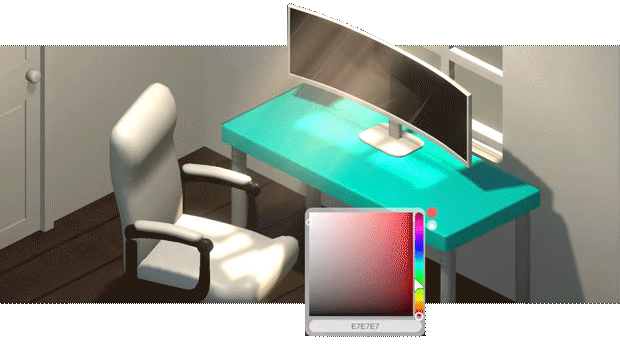 RGB色域里所有的颜色都可以使用。每个家具都可以单独定制颜色。这可以让你创造出各种颜色搭配,还能改变几乎所有物品的颜色,包括:门、窗户、家具、背景。尝试组合不同的颜色和色调来创造出你认为最好看的房间!