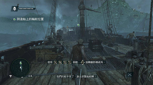 当邦尼特就位后,爱德华可以靠近船舵,然后按B键掌舵,按A键增加帆数。