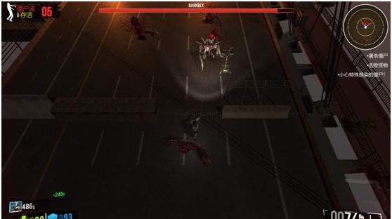 游戏中当僵尸攻击次数达到一定的次数时,便会触发BOSS战,一只外形很像《暗黑破坏神》里的大BOSS迪亚波罗的怪物会带着一群小怪攻击玩家,如果玩家在防御工事和武器道具的帮助下还可以轻松抵挡普通僵尸的攻击的话,那么BOSS战就显得吃力了很多,由于BOSS血量很厚,玩家基本上是被追着打的,于此同时,玩家还要抵御周围小怪的袭击,玩家在边退边打中,走位变得十分重要,一旦走位失误,便前功尽弃。