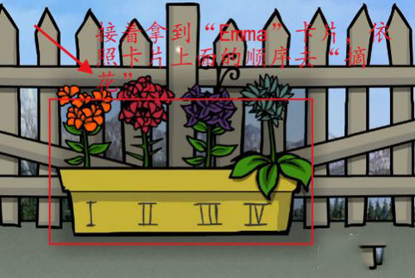 5、第五步,接着拿到“Emma”卡片,依照卡片上面的顺序去“摘花”。
