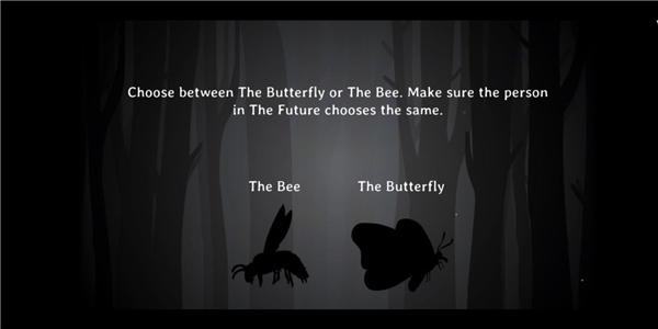 在开始内在昔日时,玩家需要做的第一件事就是选择正确的选项,然后才能开始解决谜题。这一点非常重要,否则玩家将无法一起玩。选项非常简单:首先,两个玩家都必须决定谁在过去和未来玩,并且他们不能都选择相同的选项。其次,玩家可以选择蜜蜂或蝴蝶,并且他们必须选择相同的动物才能玩相同的版本。最后,玩家应该通过同时按住按钮来确保他们同步。