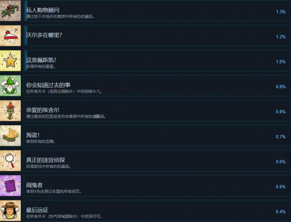 每关收集要素有4种,星星,纸条,宝箱,奖杯。