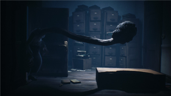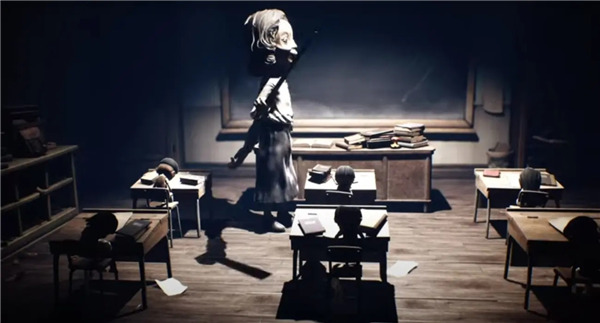相比对于大多数国内玩家都很陌生的猎人职业,老师这个职业简直是太熟悉了,而且也的确是很多人童年时绕不开的阴影。尽管老师的职责是传道受业解惑,但是在面对好玩好动的孩子们,依然要去约束,而严厉的约束往往会让孩子害怕。游戏中的老师和其他BOSS一样大,而学生们则都与主角一样小,体现的就是老师在孩子心目中的绝对强势,相比一言不合就用教尺重重敲桌子的惊吓人举动,老师的敏锐更让孩子们感到可怕,似乎自己任何的小动作都逃不过老师的眼睛。而在游戏中,老师的这个可怕的“超能力”成为了可以伸得无限长的脖子,以往梁上、排风道这些原本可以长舒一口气的安全地方,在老师这里也都不安全,一样要躲要逃。