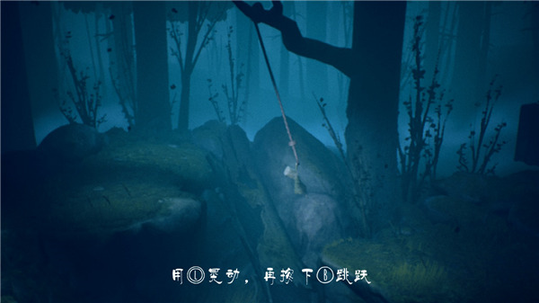 从空心木钻上去,按住Y冲刺跳跃,然后按ZL来抓住绳子晃过去