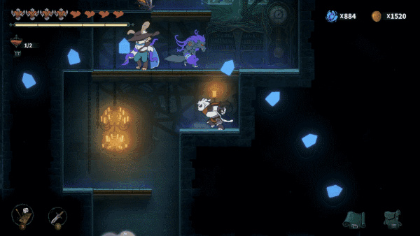 1、游戏的手感,虽然玩下来手感还算不错,不过人物不能换武器只有一把剑从头用到尾,而且只能平砍2连,不能往上面砍,许多弹幕或者蝙蝠之类敌人都从头顶下来的,还是希望加个上砍比较好。人物虽然能够下蹲,不过不能蹲下砍也挺滑稽。