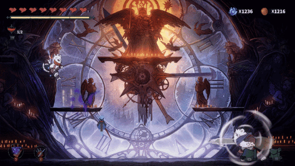 游戏的系统采用了rougelike随机地图要素,结合了类银河恶魔城要素的平台动作游戏。boss设计的也非常有特色,不是常见的那种偏向近身肉搏的动作游戏,而更偏向弹幕要素的成分,比如作为首发版最终boss的死灵夫人,就是典型的弹幕类boss,长时间躲空中发射弹幕让你躲闪的类型,所以游戏除了对玩家有一定的动作要求以外,对躲弹幕也是有着非常高的要求。