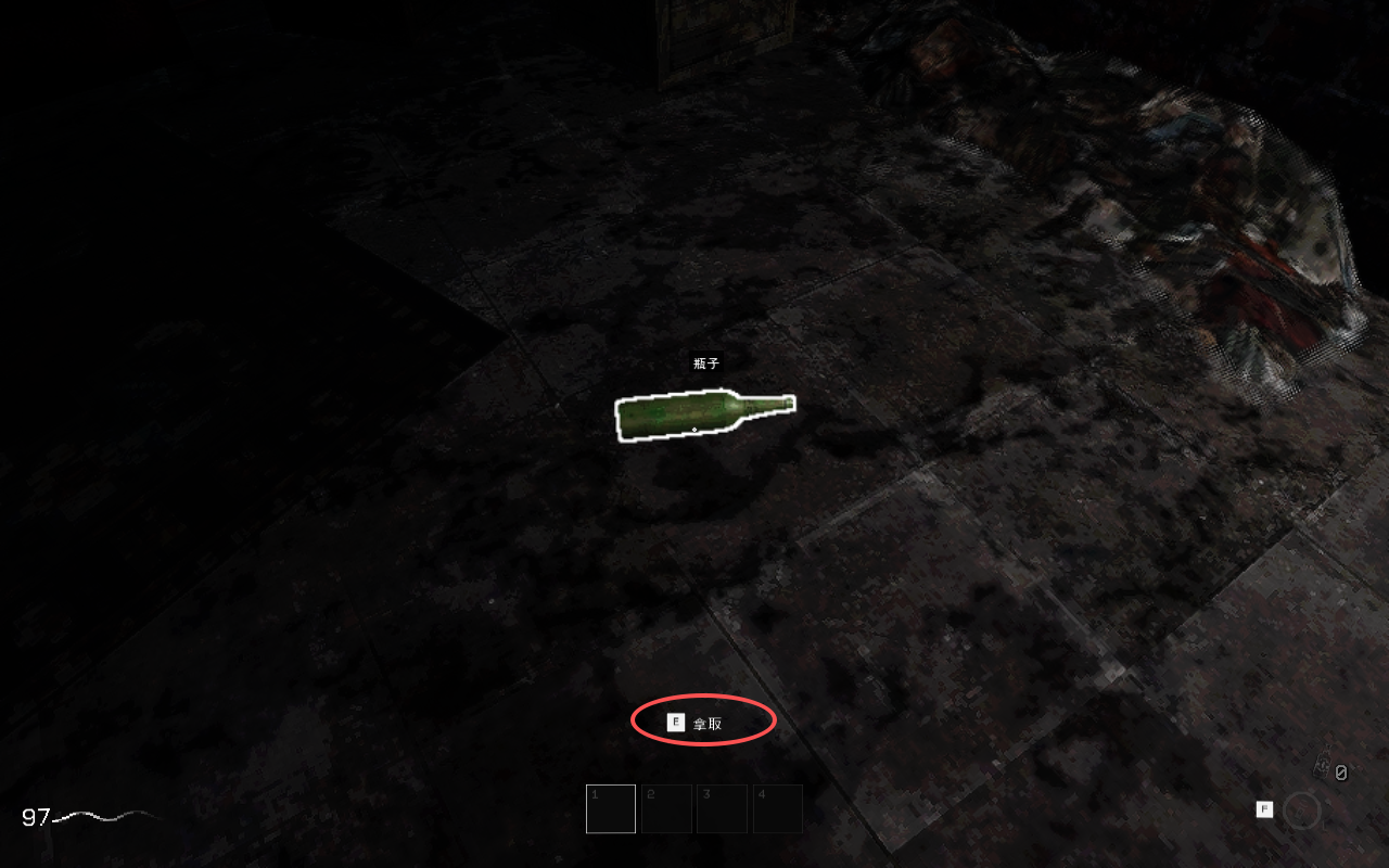 5、靠近后,点击“E”键互动拾取,可以点击“G”键丢出,可以用于吸引怪物。