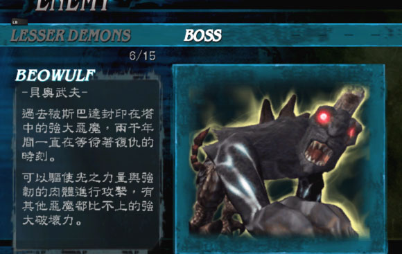 贝奥武夫,俗称小贝,战狼。实打实的肉搏系恶魔,2000年前被斯巴达打瞎了一只狗眼,封印在魔塔里,属于非常罕见的光属性恶魔,擅长物理输出。战斗力非常高,但丁与他久战不分胜负。然而想要战胜贝奥武夫也不是难事,只要注意以下几点: