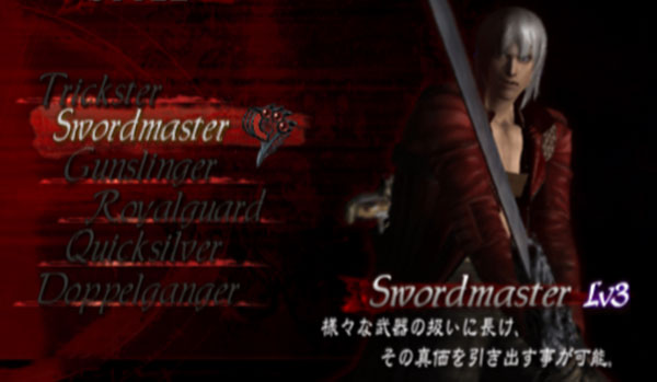 使用这种风格技可以使但丁快速躲开很多攻击和快速接近敌人,玩弄对手,并且能在空中向前冲刺,飞檐走壁和短距离瞬间移动的能力。初始级别为一级,通过积累战斗中杀死的怪物的经验值升级。