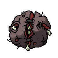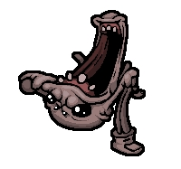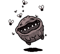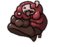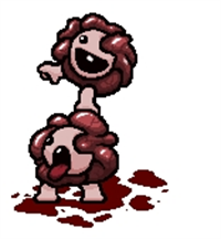 血量少,新加的boss,总共两只,会在移动路线上留下yima血,停下来会放6(?)方向弹,释放红苍蝇;在与玩家同一垂线、水平线时会向玩家方向冲去,由于玩家的击退效果,移动路线会变得难以预测,有一定难度的boss,第一次见也是吓到我了