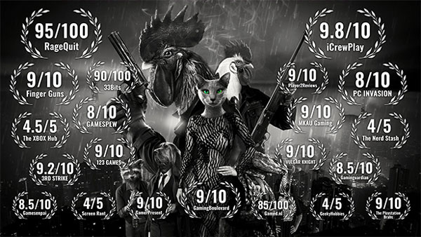 公鸡神探(Chicken Police)是一款非常有趣的视觉小说类独立游戏。游戏整体采用了四五十年代的黑色电影(Film noir)风格,并且非常的拥有幽默风味。在游戏中,玩家需要走访各个地点,与不同的角色展开对话或审问并收集线索,最终使案件尘埃落定。游戏的风格很容易使人想起罪恶之城,虽然也存在讽刺元素,只不过这个故事的终局会是阶段性的柳暗花明。所以游戏的玩法体验整体偏向AVG,对话与文本较多,搭配上经典影视风格的配音,仿佛在看一部真正的侦探片。公鸡神探拥有能够让您身临其境的配音,优秀的美术概念以及爵士乐塑造出了Sonny Featherland那充斥着香烟,威士忌和雨水还有穿久了的皮大衣馥郁的世界。并且对于单个角色的塑造很优秀,动物们都非常可爱。游戏的故事剧情也是非常的紧凑的,能够给玩家非常不多的带入体验,如果您是一个喜欢悬疑探案电影的玩家,那么这款游戏非常值得你体验一番。