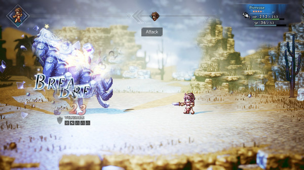 八方旅人借鉴了另一部作品《勇气默示录(Bravely Default)》中的“Brave”机制,游戏中名为“Boost”的机制可让角色在一回合内攻击数次,你也可把这一效果留到之后的回合中使用。 最多可同时保留4个Boost效果,也就是战斗中角色名称下方的Boost点数“BP”,你还可选择为角色使用Boost的次数。对武器攻击使用Boost效果可让角色多挥动武器一次,比如对装备斧子的角色使用了4重Boost,他就会用斧子额外攻击敌人4次。而对法术使用Boost只会增加法术强度而不是增加施法次数。