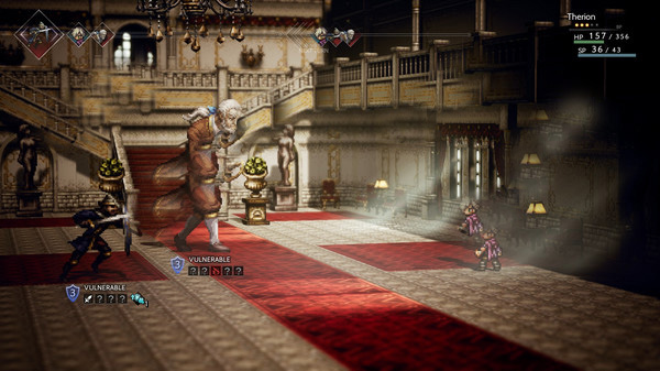 一名流亡到断崖连绵的CliffLand地区的大盗,Therion的大名让当地的富人们心惊胆战,但他的过去却鲜有人知。有一天Therion听到了一些传闻,他像往常一样潜入了一栋豪宅,只为得到那他从未见识过的宝藏。