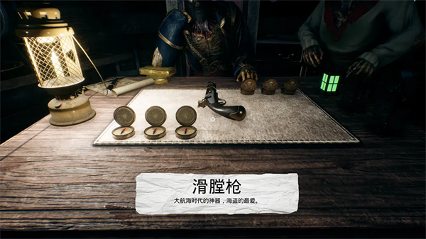 游戏机制类似俄罗斯轮盘,你会被随机发放一把滑膛枪,这把枪看似普通却充满了神秘的力量。每一轮对决开始,你和幽灵海盗们会轮流朝着自己的头部开枪。滑膛枪的枪膛里只有一颗特殊的子弹,这颗子弹被注入了神秘的魔法,能够对幽灵海盗造成伤害。而对于你来说,一旦你扣动扳机射出这颗子弹并且击中幽灵海盗,那便是你走向胜利的一步。但如果在你开枪时没有射出那颗特殊子弹,你将面临幽灵海盗的反击。他们的攻击会削减你的灵魂力量,一旦你的灵魂力量归零时,你的灵魂就会永远被困在这艘亡灵船上,成为他们的一员。随着对决的进行,紧张的气氛不断攀升。每一次扣动扳机都伴随着心跳的加速和死亡的恐惧。而当你成功地在与幽灵船长的对决中幸存下来,你将离亡灵宝藏更近一步。