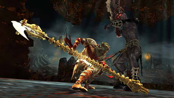 大头目战打法:头目战分为好几个阶段,第一阶段会使用手连续震地面发出震波,建议是用滚来闪避。而攻击的方式就是趁空隙使用神圣十字架攻击,魔王被打伤一次后,会开始使用龙卷风攻击,被吹到的话记得要按反应键A钮来减少伤害,之后会从破坏神的身体现出原型。第二阶段要注意的是魔王被伤害到一个程度,会飞到空中,会马上俯冲地面造成地面大范围的攻击。被打到不是闹着玩的,还有魔王有个吐舌头的动作时神圣十字架会被反击,要注意。魔王还有一招非常痛,会连续投掷火焰弹,要注意每颗火焰弹的闪躲时差,被打到更痛,将血打到三分之一时,魔王再度变身。此时是第三阶段,有翼的魔王,此时他会在空中狂放五颗的火焰弹,不过因为伤害很大,所以尽量保持一定的距离,此时只能用RB镰刀的勾子勾住魔王再给予一些攻击,攻击到一定程度时,魔王将使出最后绝招。此时地面的五芒星会升起五个平台,利用RB钓勾到魔王的身上。会进行最后的反应键,→、←、X、B连打,欣赏最后的破关画面。