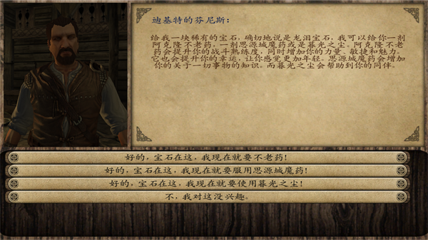 1、在酒馆中偶遇迪基特的芬尼斯,对话兑换三种魔药。