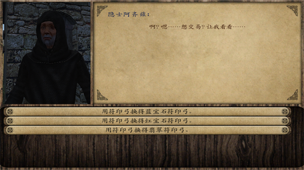 3、在阿尔·阿齐兹矿坑中兑换和升级神奇符印武器。(阿尔·阿齐兹隐藏矿坑需要在酒馆和兰道夫修士用一大袋钻石换取位置)兑换神奇符印武器需要一颗龙泪宝石和一根金条,升级神奇符印武器需要一颗龙泪宝石、一瓶葡萄酒和一大袋钻石。